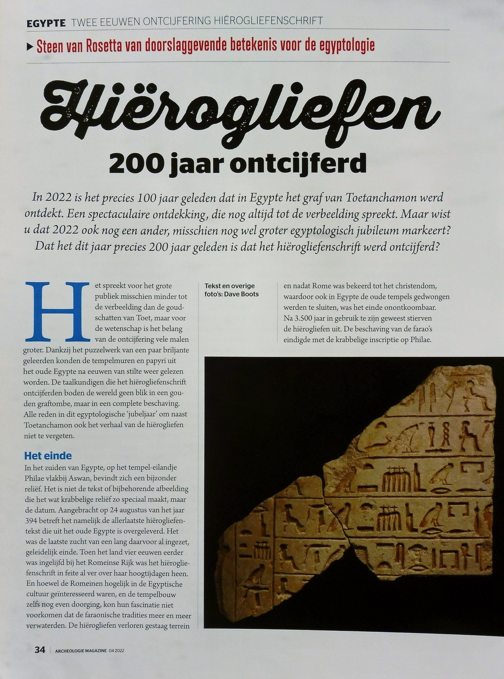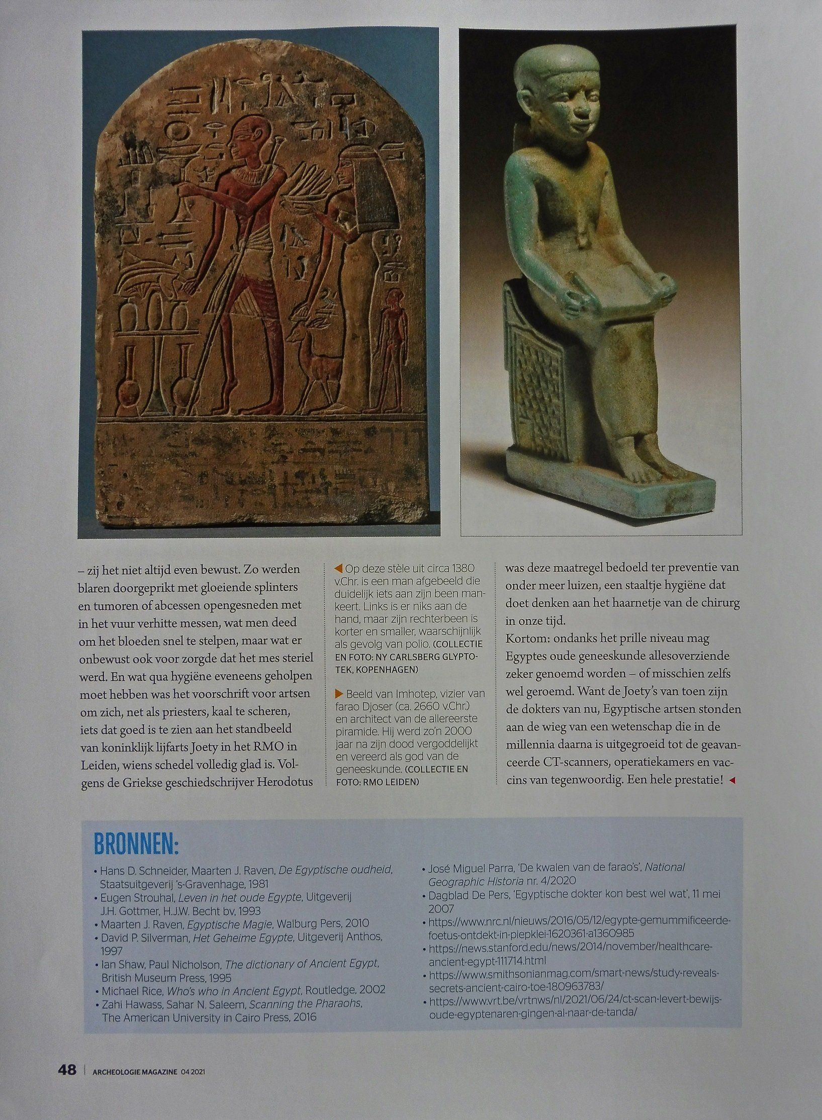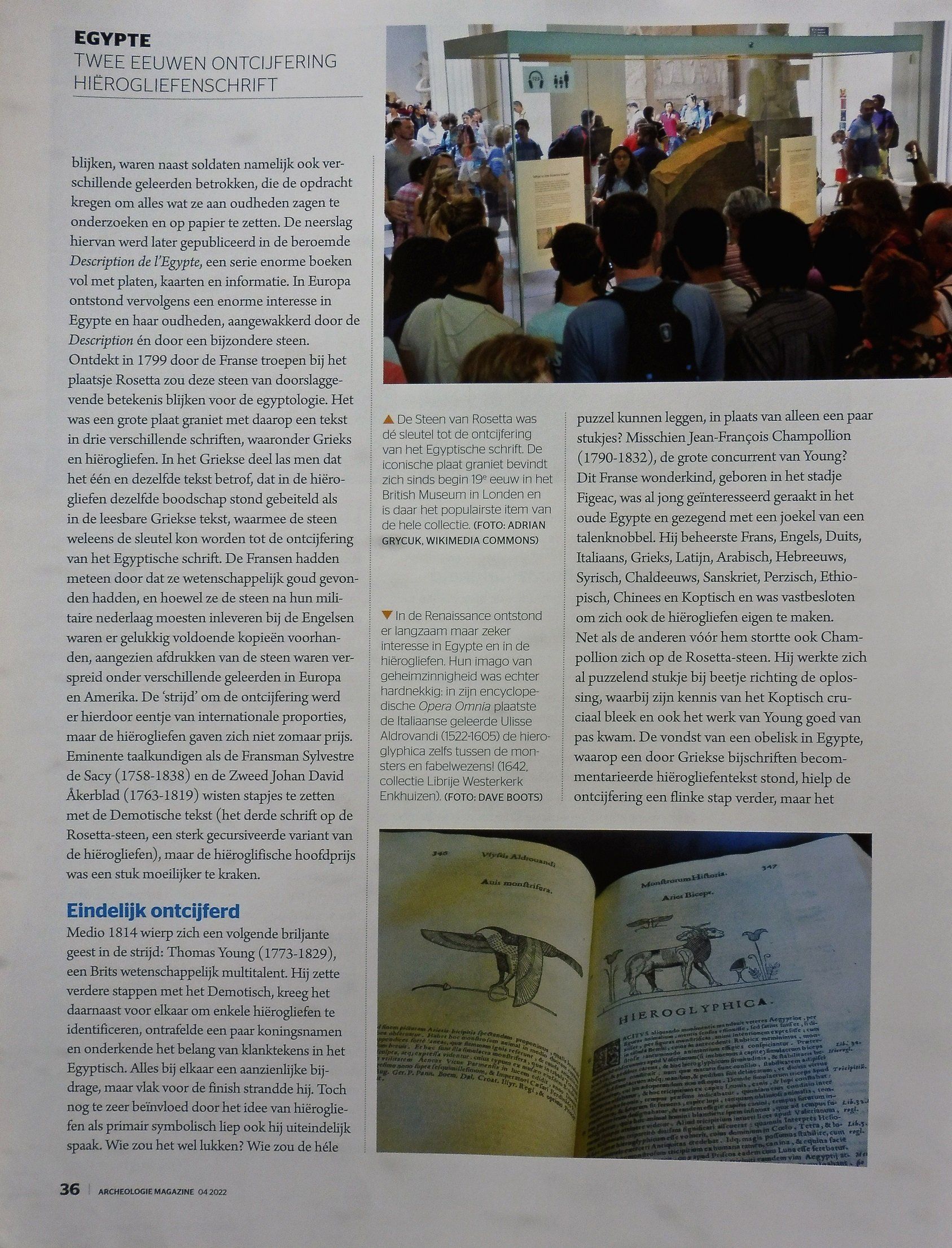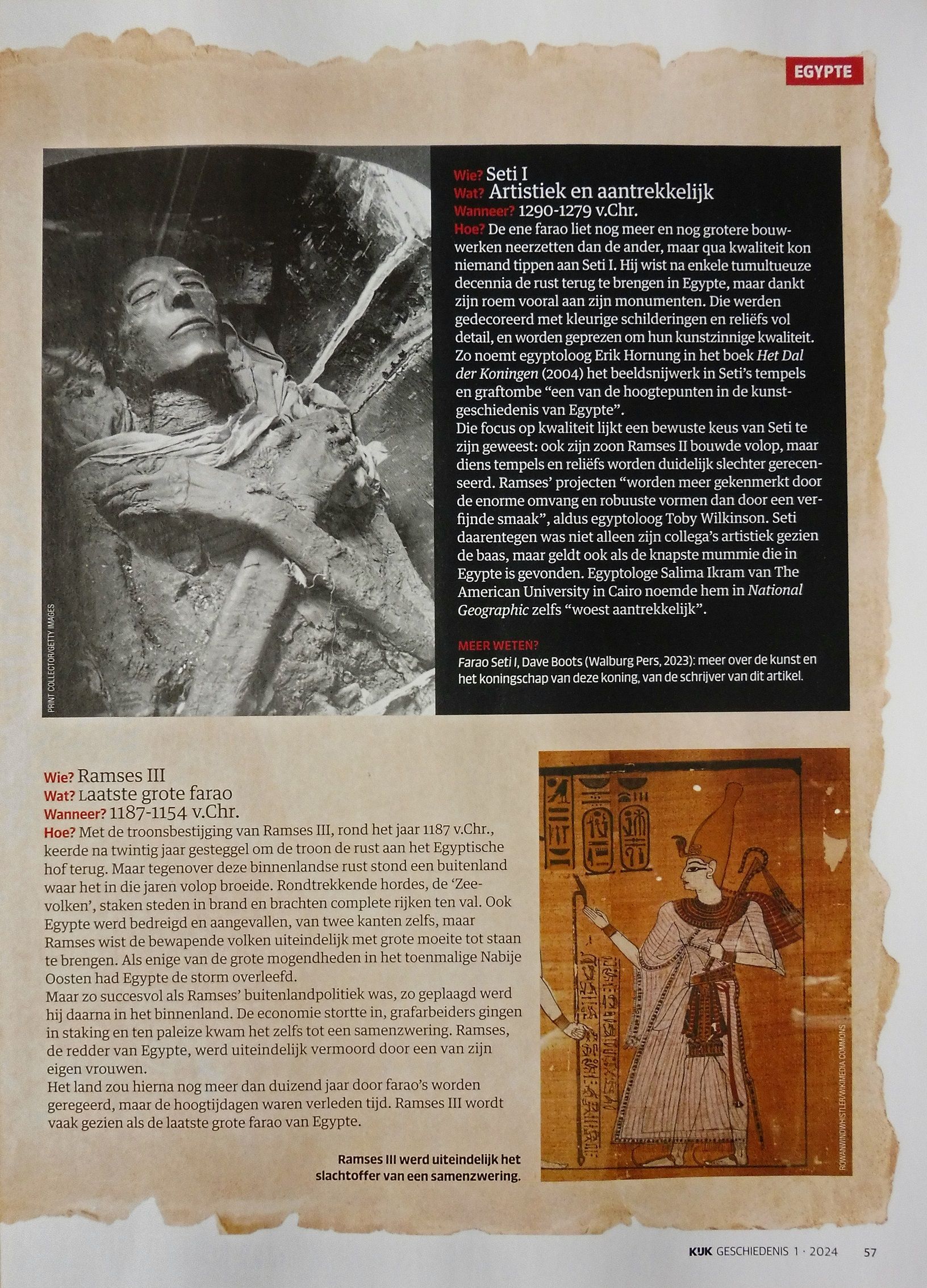 De afgelopen jaren heb ik verschillende keren met artikelen in populair-wetenschappelijke geschiedenisbladen gestaan. Dit gaat om stukken in KIJK-Geschiedenis en National Geographic Historia, maar de meeste artikelen heb ik geschreven voor Archeologie Magazine. Hoewel ook mijn woonplaats Enkhuizen soms ter sprake komt in de teksten, gaan de meeste over het oude Egypte. Zo heb ik bijvoorbeeld iets geschreven over de Egyptische verzameling van het Haagse Museum Meermanno, over de Egyptische obelisken in Parijs, Londen en New York en over de Britse graaf Lord Carnarvon en de 'vloek van Toetanchamon'. De artikelen bevatten een hoop informatie, maar als het goed is staat het allemaal zó opgeschreven dat het toch prettig "wegleest". Enfin, of dat zo is kunt u zelf hieronder oordelen. Door op de foto's van de pagina's te klikken, opent vanzelf een grotere, leesbare versie. Veel leesplezier!
