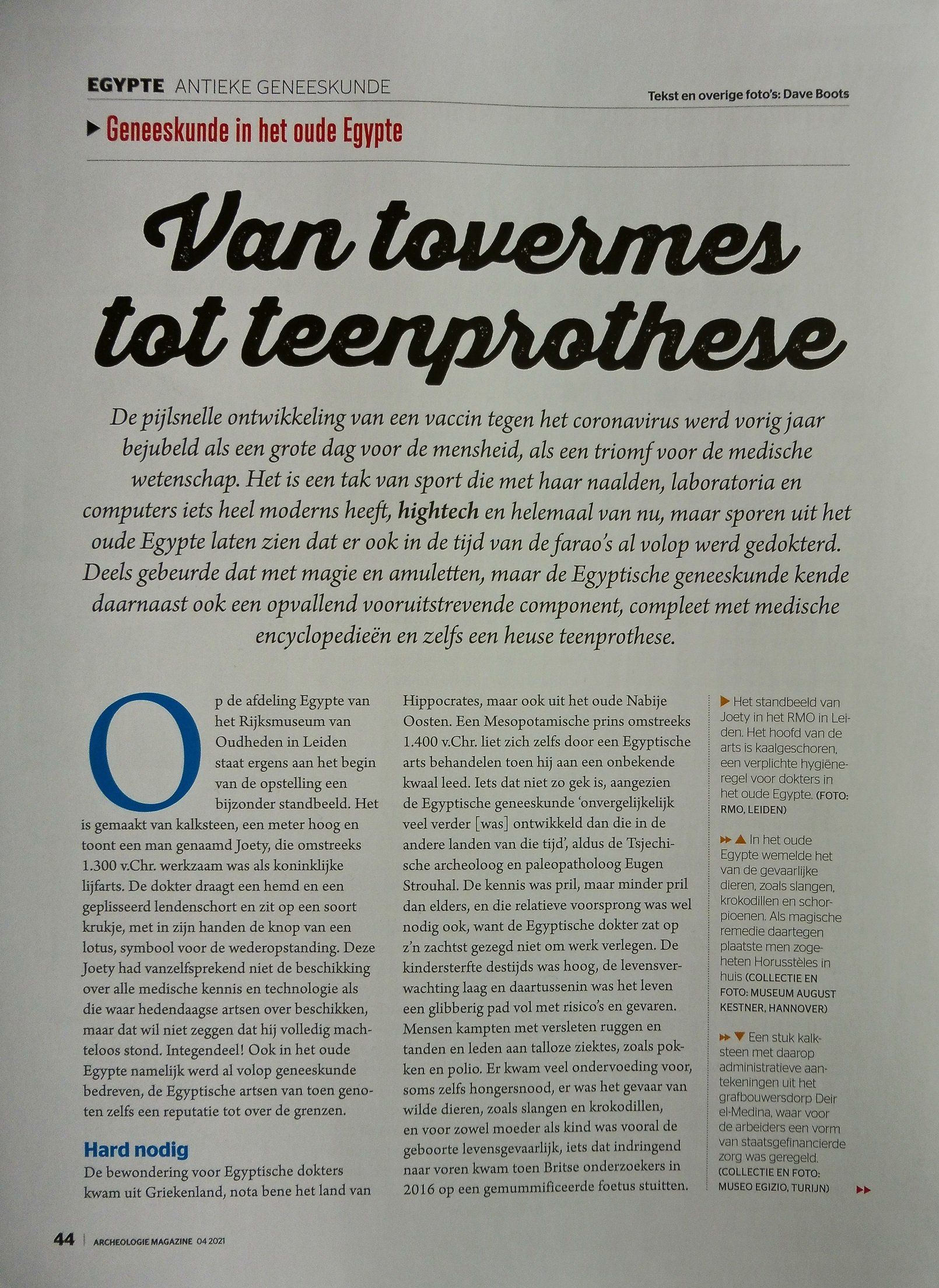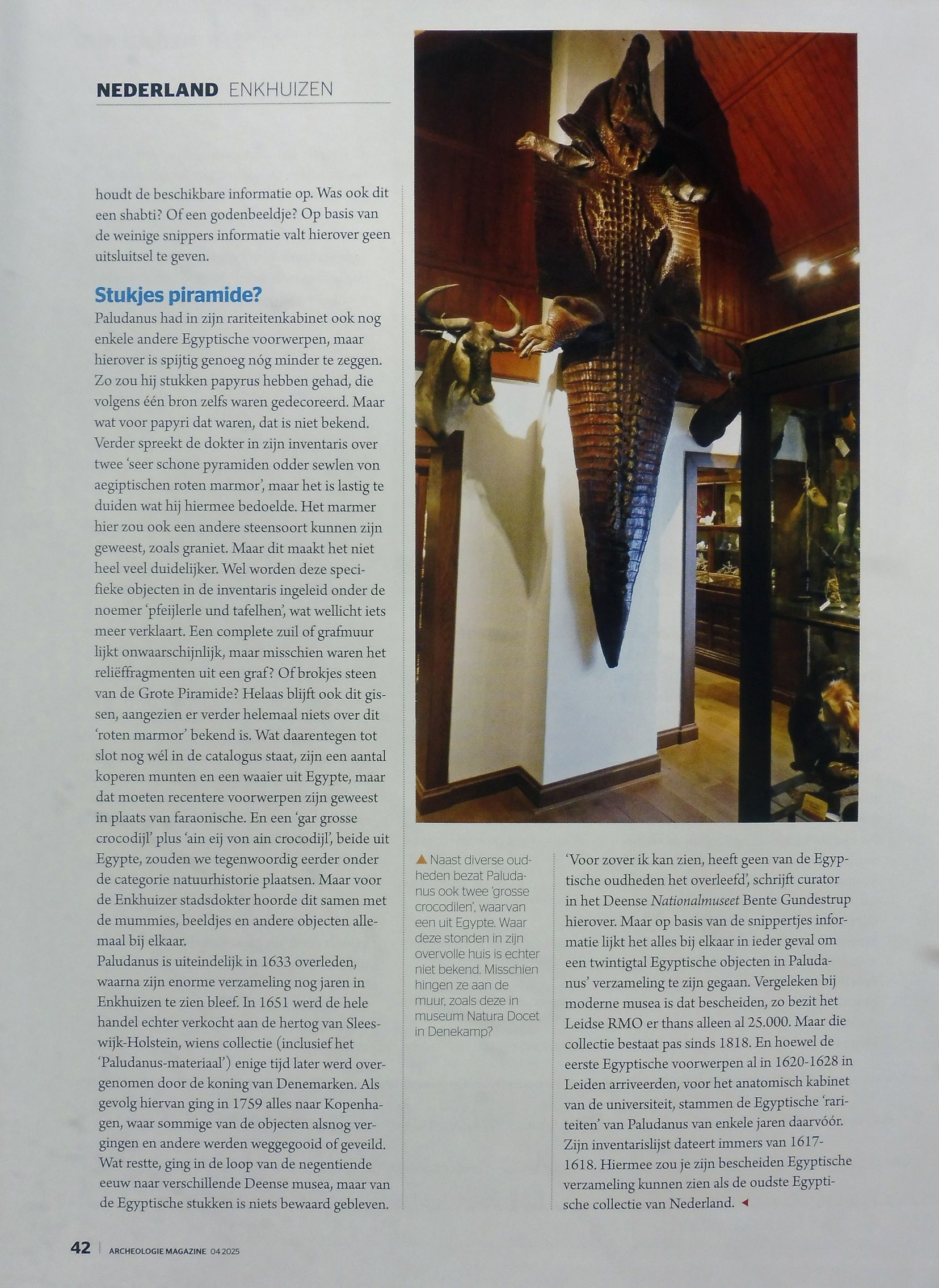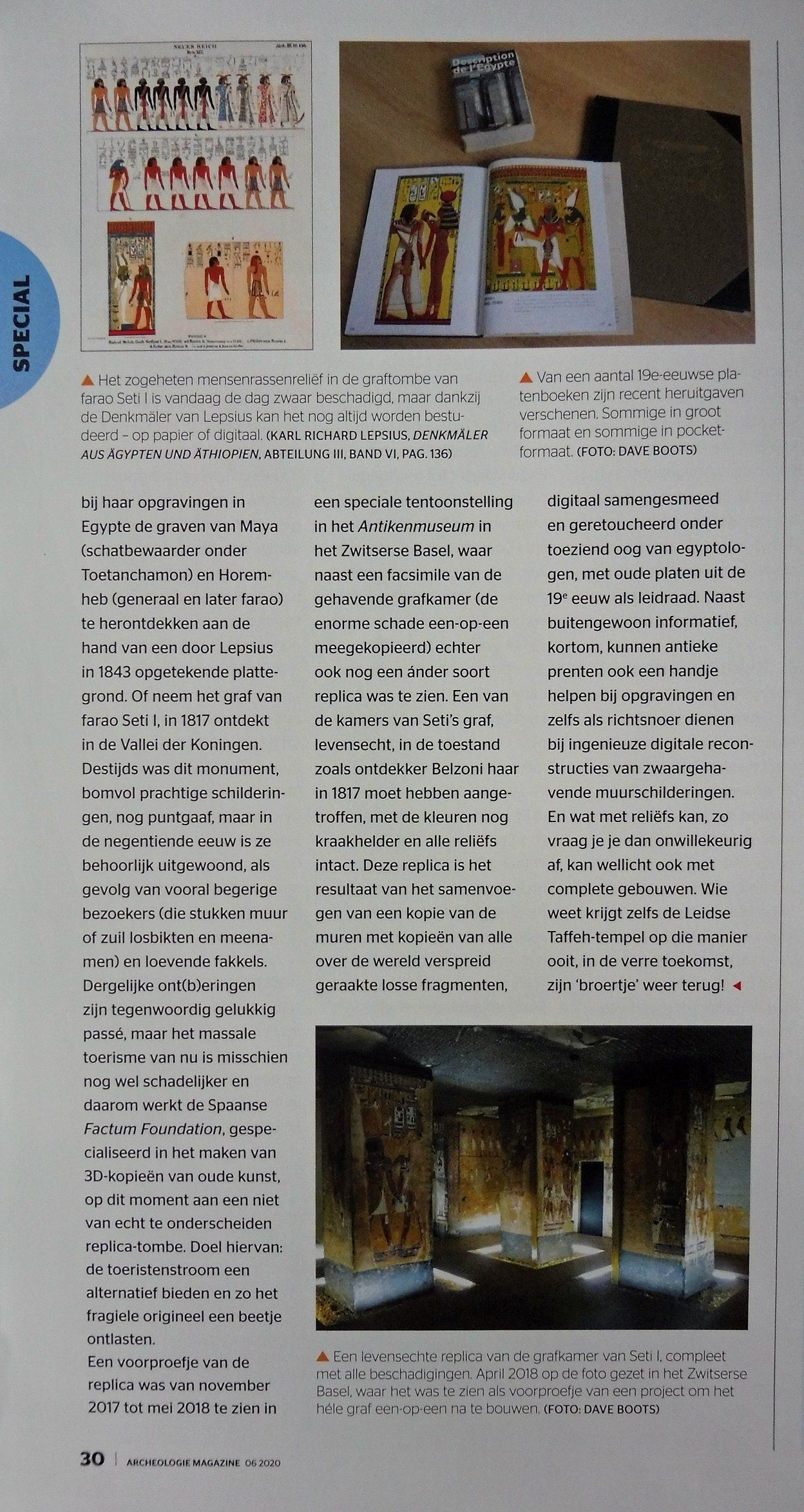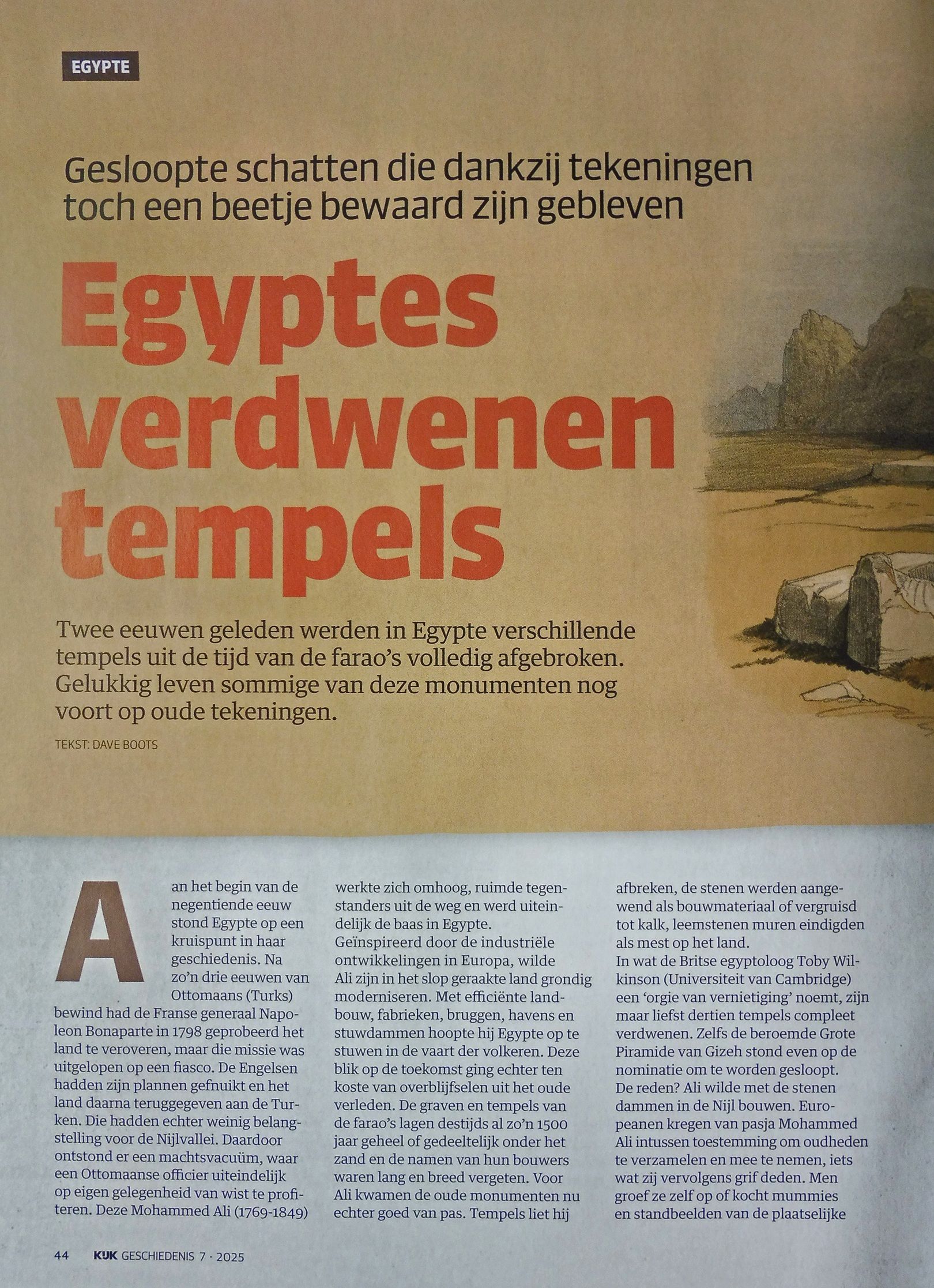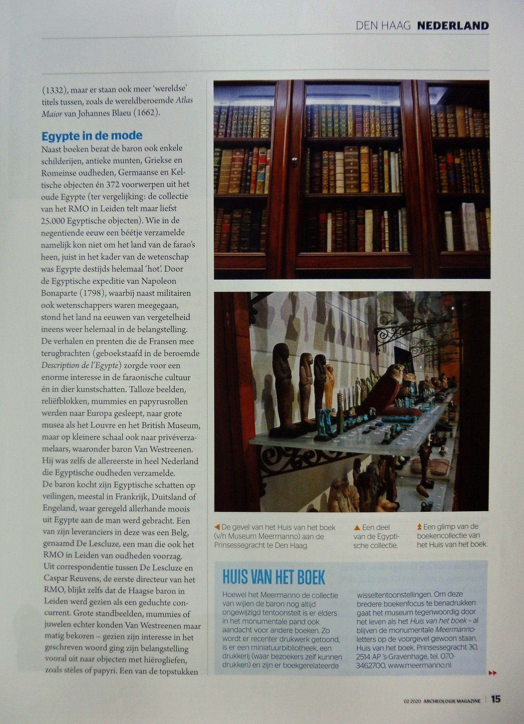 De afgelopen jaren heb ik verschillende keren met artikelen in populair-wetenschappelijke geschiedenisbladen gestaan. Dit gaat om stukken in KIJK-Geschiedenis en National Geographic Historia, maar de meeste artikelen heb ik geschreven voor Archeologie Magazine. Hoewel ook mijn woonplaats Enkhuizen soms ter sprake komt in de teksten, gaan de meeste over het oude Egypte. Zo heb ik bijvoorbeeld iets geschreven over de Egyptische verzameling van het Haagse Museum Meermanno, over de Egyptische obelisken in Parijs, Londen en New York en over de Britse graaf Lord Carnarvon en de 'vloek van Toetanchamon'. De artikelen bevatten een hoop informatie, maar als het goed is staat het allemaal zó opgeschreven dat het toch prettig "wegleest". Enfin, of dat zo is kunt u zelf hieronder oordelen. Door op de foto's van de pagina's te klikken, opent vanzelf een grotere, leesbare versie. Veel leesplezier!