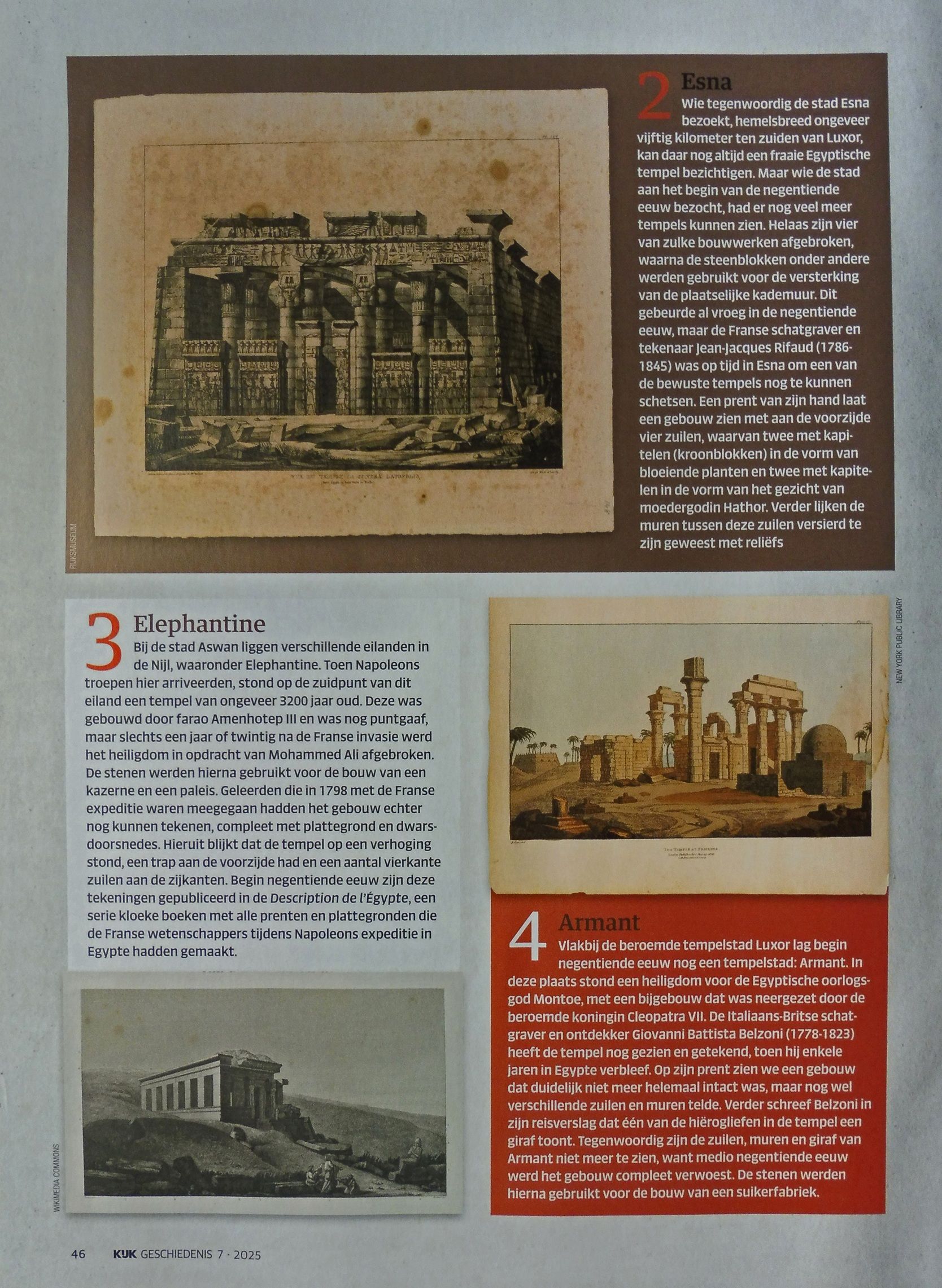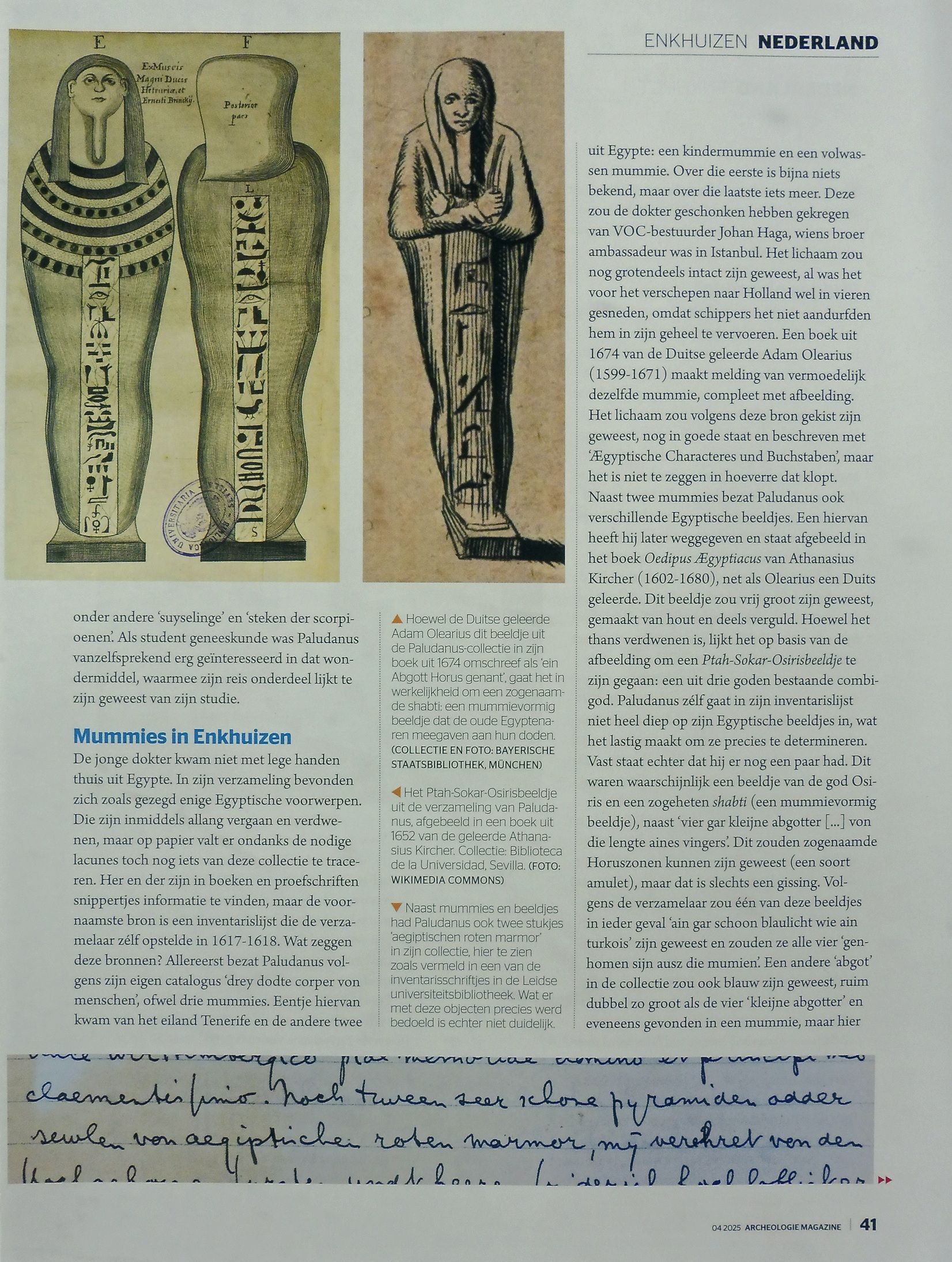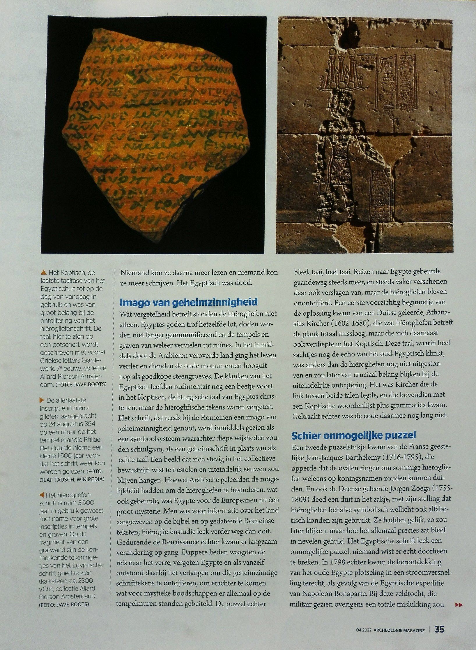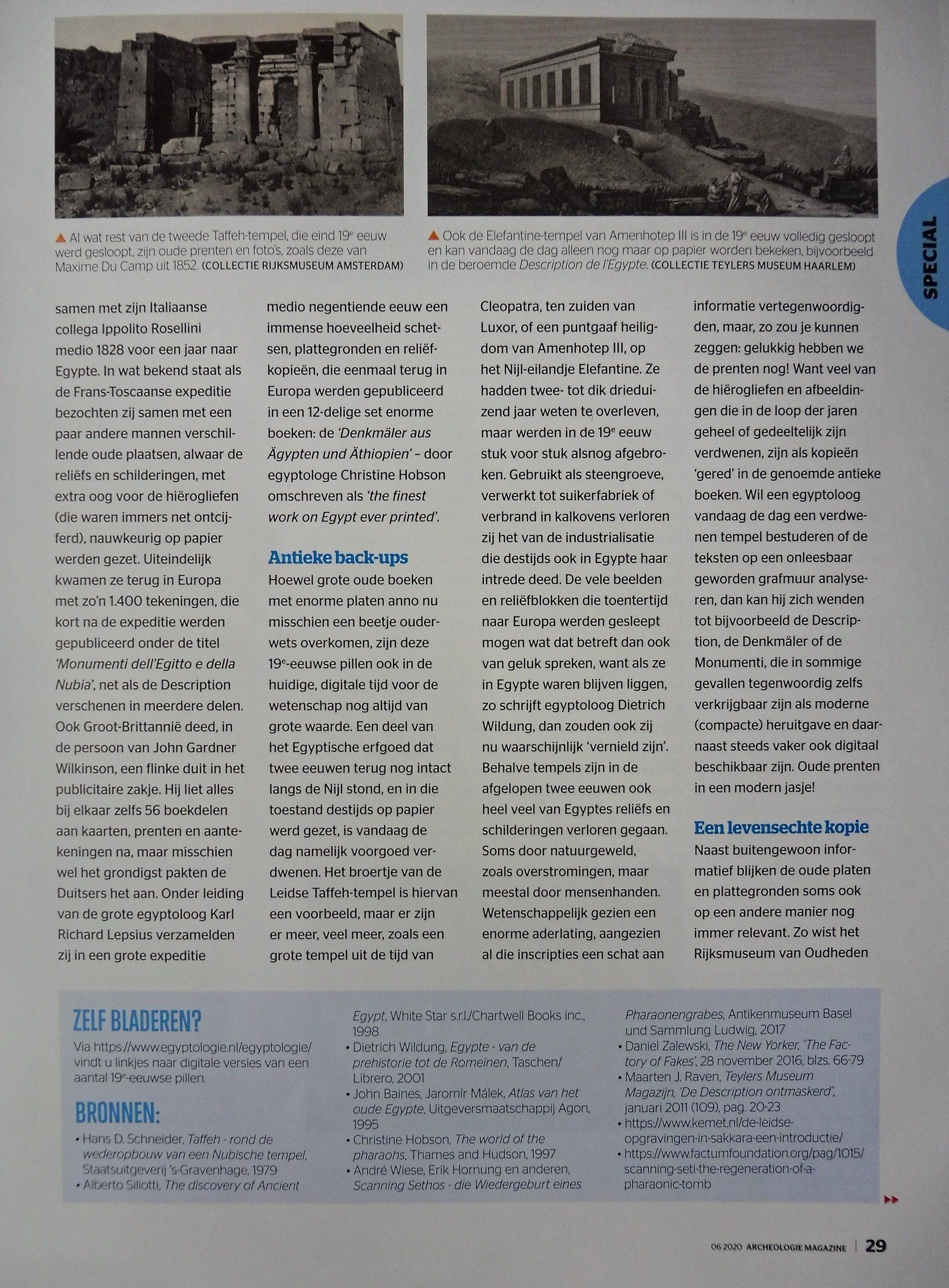 De afgelopen jaren heb ik verschillende keren met artikelen in populair-wetenschappelijke geschiedenisbladen gestaan. Dit gaat om stukken in KIJK-Geschiedenis en National Geographic Historia, maar de meeste artikelen heb ik geschreven voor Archeologie Magazine. Hoewel ook mijn woonplaats Enkhuizen soms ter sprake komt in de teksten, gaan de meeste over het oude Egypte. Zo heb ik bijvoorbeeld iets geschreven over de Egyptische verzameling van het Haagse Museum Meermanno, over de Egyptische obelisken in Parijs, Londen en New York en over de Britse graaf Lord Carnarvon en de 'vloek van Toetanchamon'. De artikelen bevatten een hoop informatie, maar als het goed is staat het allemaal zó opgeschreven dat het toch prettig "wegleest". Enfin, of dat zo is kunt u zelf hieronder oordelen. Door op de foto's van de pagina's te klikken, opent vanzelf een grotere, leesbare versie. Veel leesplezier!