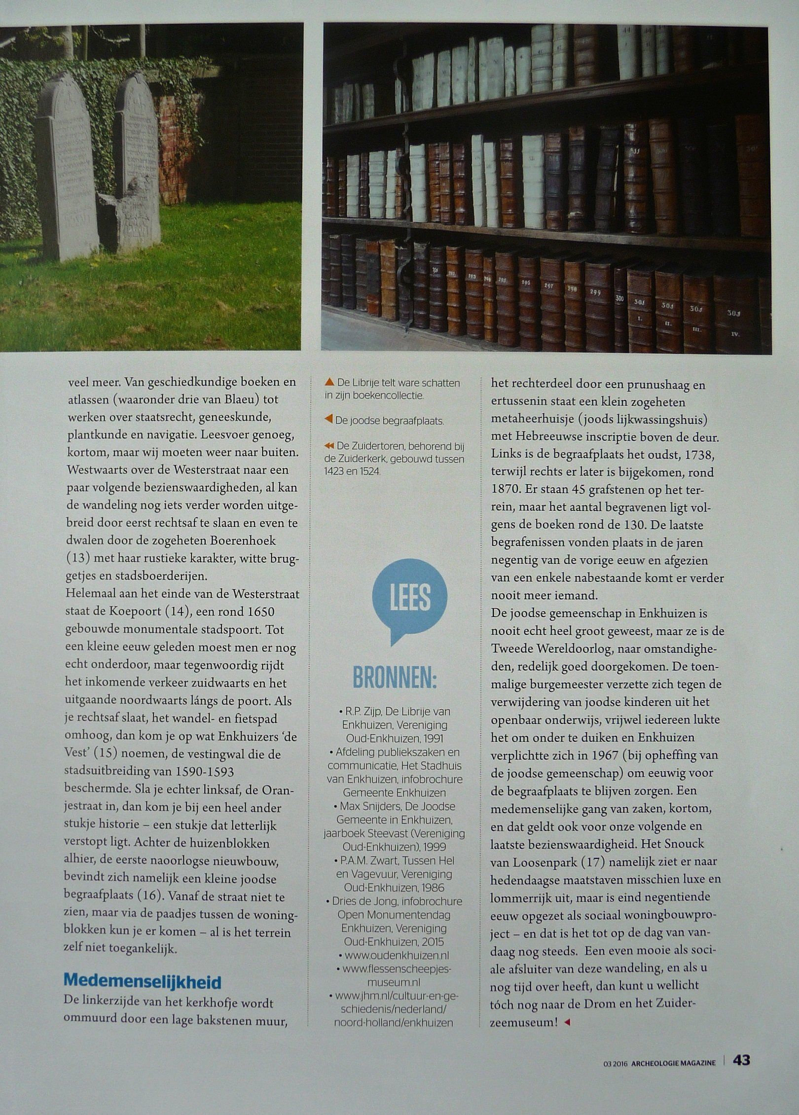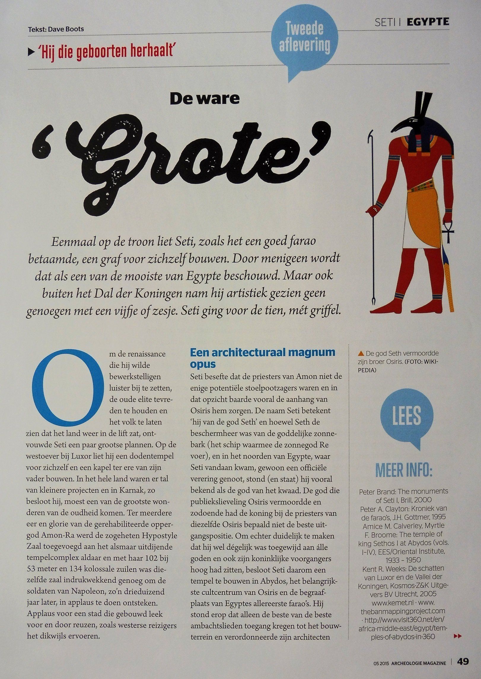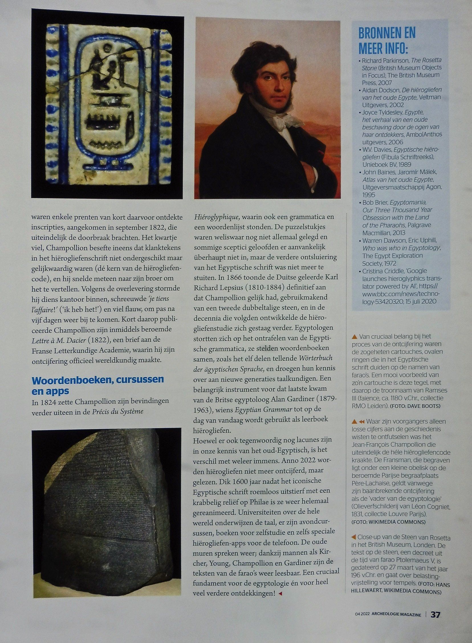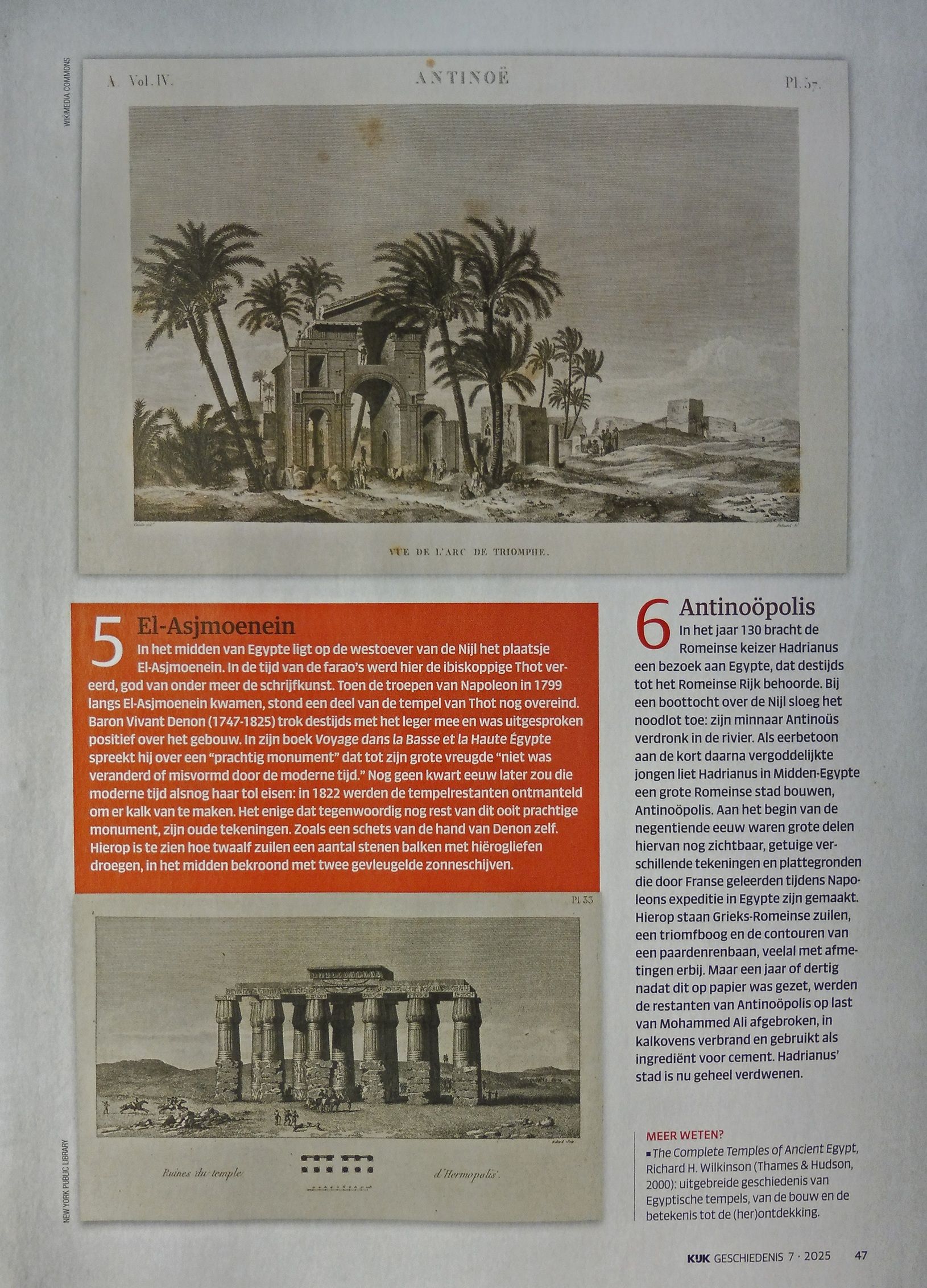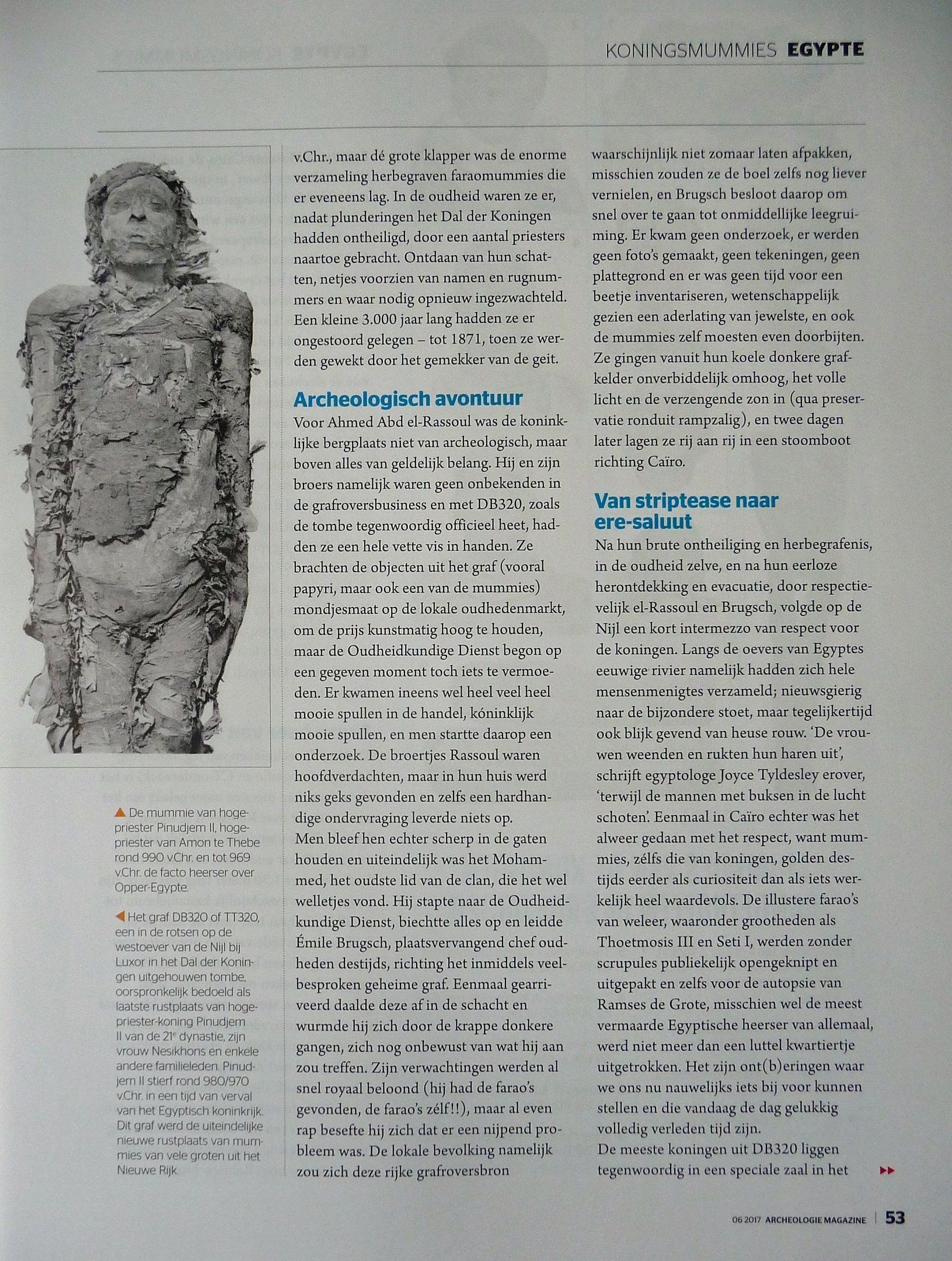 De afgelopen jaren heb ik verschillende keren met artikelen in populair-wetenschappelijke geschiedenisbladen gestaan. Dit gaat om stukken in KIJK-Geschiedenis en National Geographic Historia, maar de meeste artikelen heb ik geschreven voor Archeologie Magazine. Hoewel ook mijn woonplaats Enkhuizen soms ter sprake komt in de teksten, gaan de meeste over het oude Egypte. Zo heb ik bijvoorbeeld iets geschreven over de Egyptische verzameling van het Haagse Museum Meermanno, over de Egyptische obelisken in Parijs, Londen en New York en over de Britse graaf Lord Carnarvon en de 'vloek van Toetanchamon'. De artikelen bevatten een hoop informatie, maar als het goed is staat het allemaal zó opgeschreven dat het toch prettig "wegleest". Enfin, of dat zo is kunt u zelf hieronder oordelen. Door op de foto's van de pagina's te klikken, opent vanzelf een grotere, leesbare versie. Veel leesplezier!