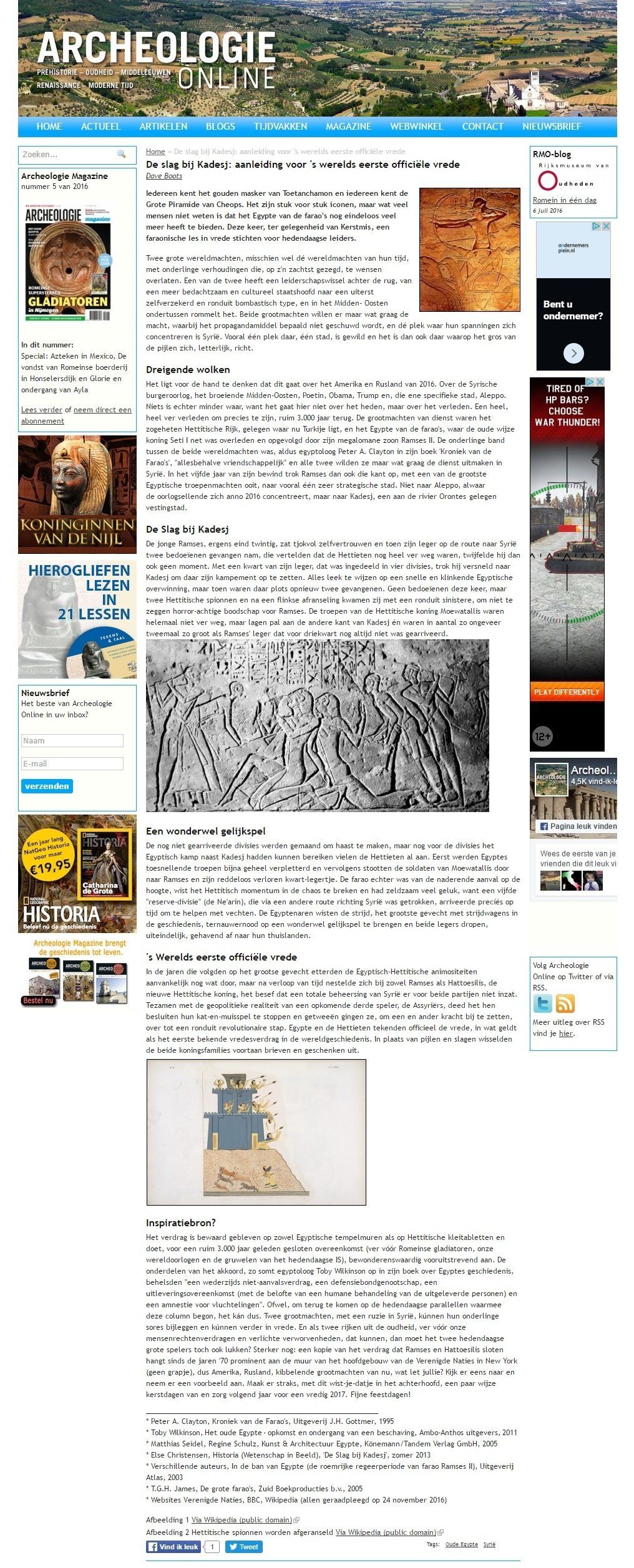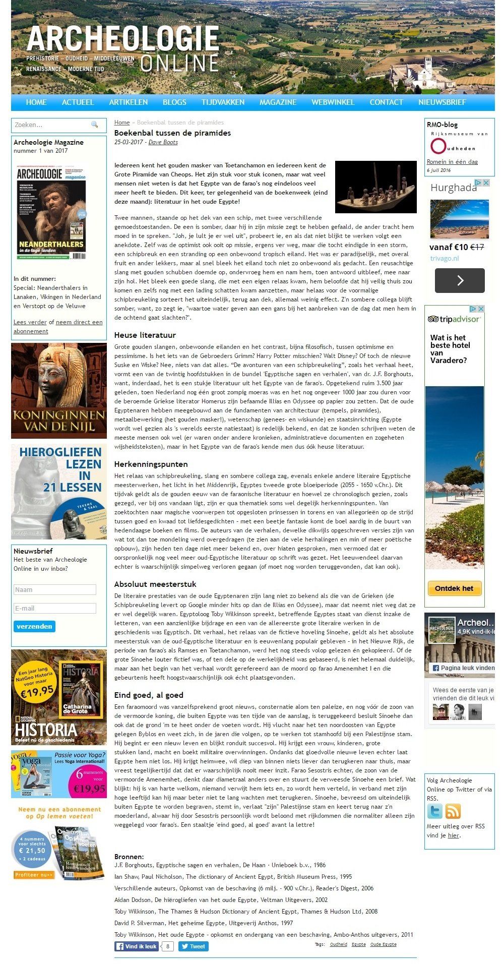 Naast een paar grote artikelen voor Archeologie Magazine, en verschillende brieven en opiniestukken, zijn er ook nog een paar andere teksten van mij gepubliceerd. Om precies te zijn een kleine twee jaar elke maand een soort column over het oude Egypte op de website