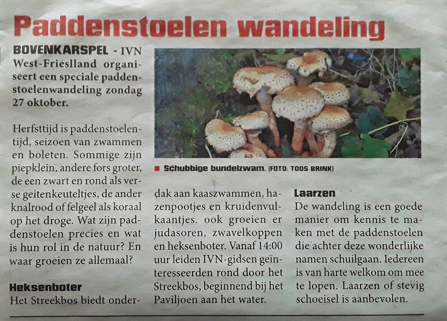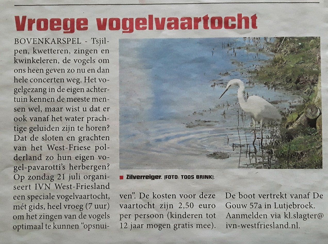 IVN-Westfriesland in 2019 en begin 2020 een kleine honderd persberichten (alsmede een artikel over een jubilerende vrijwilliger in het verenigingsblad) en sinds 2022 af en toe een stukje in de nieuwsbrief van de